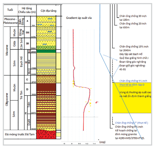 The paper listed and analysed the success as well as the typical complexities and failures encountered during the construction of wells T-1, T-2 and T-3 in T formation in the southeast area of Cuu Long basin, off shore Vietnam, which is managed by the Petrovietnam Domestic Exploration Production Operating Company Limited (PVEP POC). On that basis, the authors proposed remedial solutions and rationalised the structure for the wells in T formation. One of the proposed solutions is to adjust the depth of the 13⅜inch shoe casing to fi t the geological formation. This solution has been applied successfully to wells in Cuu Long basin.