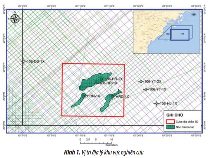 This paper presents the research results on the characteristics of Mesozoic carbonate reservoir in Ham Rong, Ham Rong Nam and Ham Rong Dong area (Block 106 in the continental shelf of Vietnam) on the basis of integrated analysis of seismic and well logging data. By applying various research methods such as petrographic thin section analysis, XRD analysis, scanning electron microscopy (SEM), logging, seismic attributes, and application of artificial neural network (ANN) for building porosity model, the authors have conducted depositional environment analysis, rock classification of Mesozoic carbonate, and analysis of secondary diagenesis processes that affect the stratigraphic quality and porosity model of the studied area.